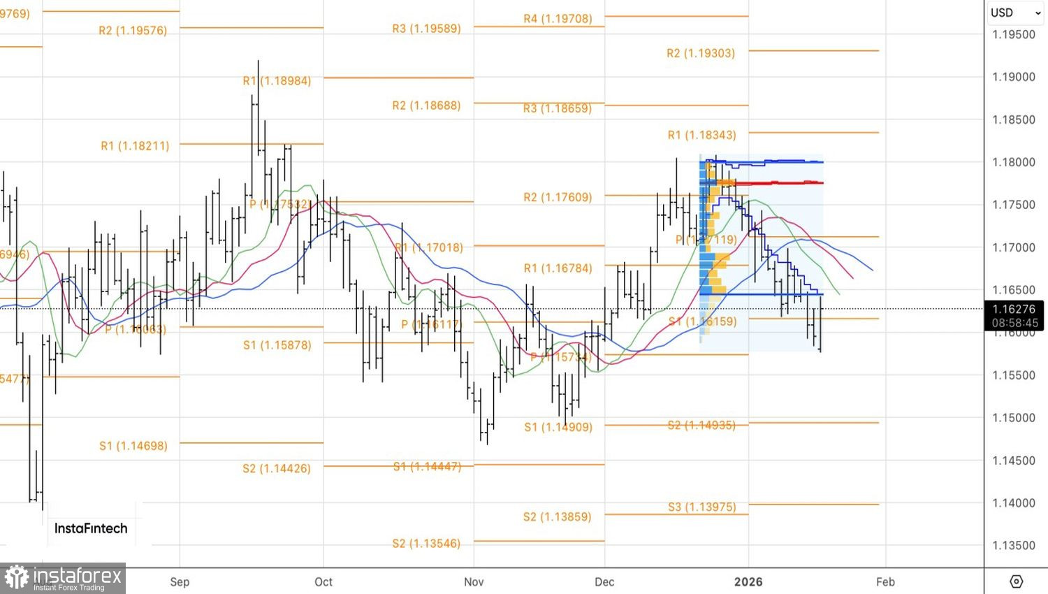 Технически на дневном графике EUR/USD имеет место бар, известный как Поглощение. Необходимыми условиями для продолжения ралли являются закрепление котировок выше поддержки на 1,1615 с последующим успешным штурмом сопротивления на 1,1645. Только в этом случае имеет смысл переходить от используемой ранее стратегии продаж основной валютной пары к ее покупкам.