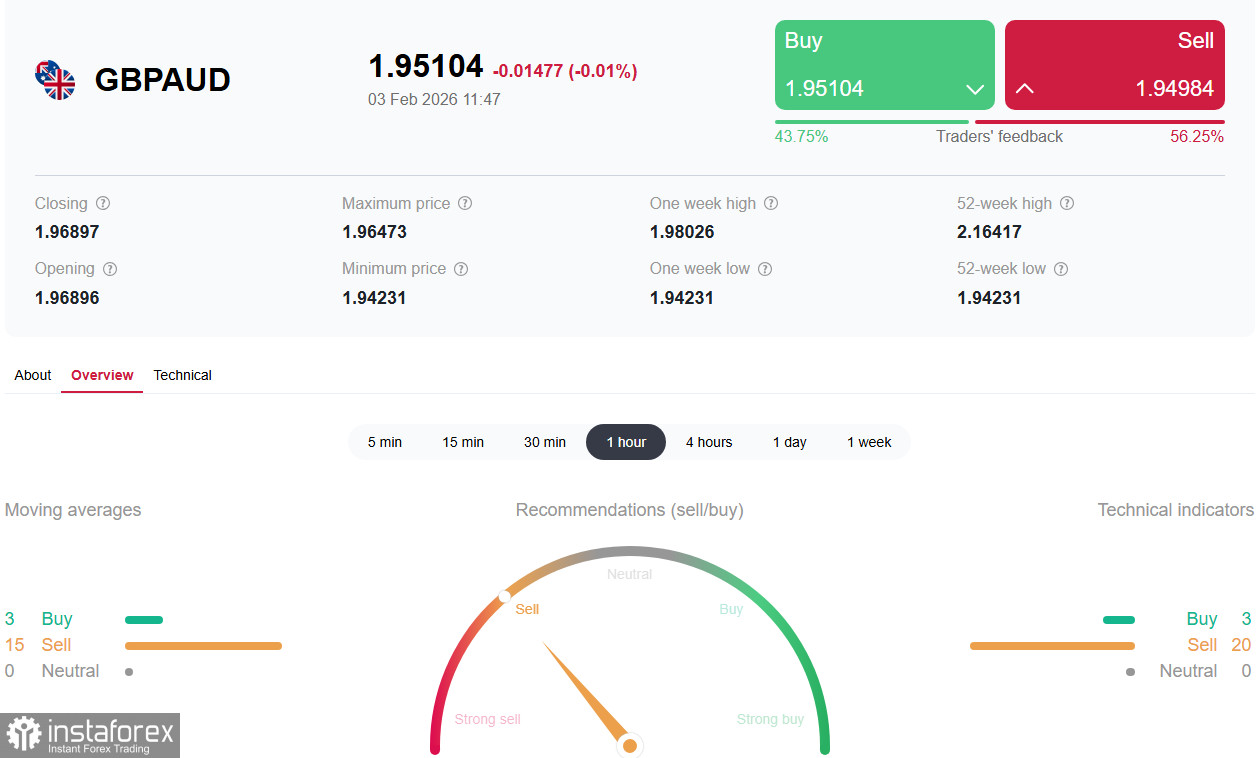 На текущий момент пара GBP/AUD демонстрирует выраженную нисходящую динамику, торгуясь вблизи отметки 1.9500 после обновления 15-месячного минимума около 1.9425.