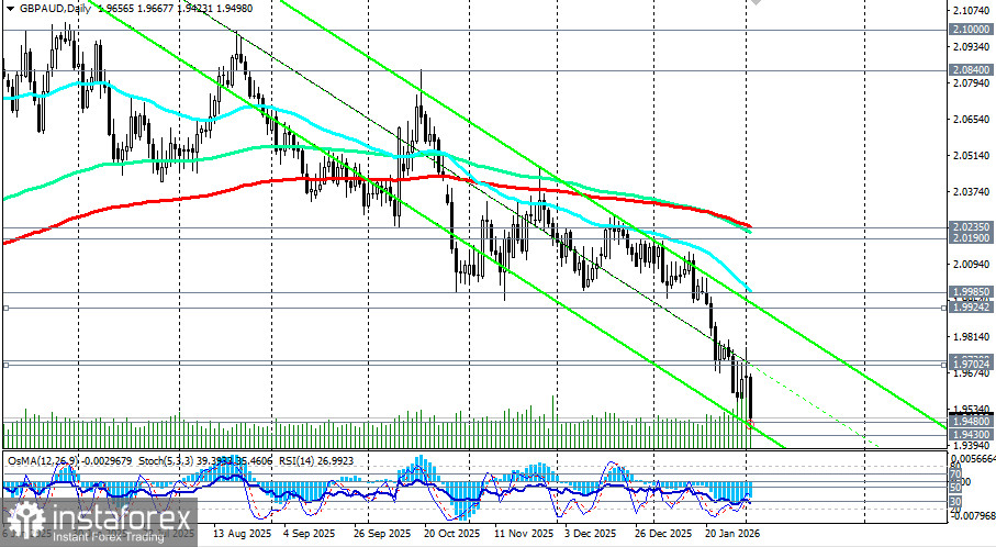 С технической точки зрения пара балансирует на грани завершения многомесячного бычьего тренда. Пробой ключевой поддержки в зоне 1.9480 откроет путь к значительному дальнейшему снижению. В ближайшей перспективе основной катализатор движения — решение BoE. Если британский регулятор подтвердит настрой на смягчение, давление на пару GBP/AUD усилится, и нисходящий тренд получит новое подтверждение.