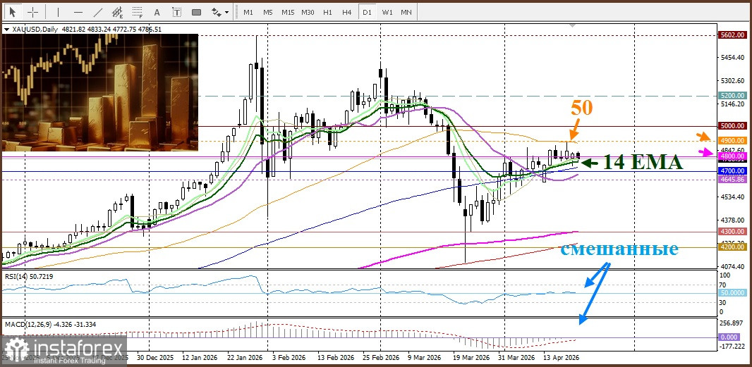 Спикер парламента Ирана Мохаммад Багер Галибаф подчеркнул, что Тегеран не готов вести переговоры под угрозами. Министр иностранных дел Аббас Арагчи также отметил, что продолжающиеся нарушения режима прекращения огня со стороны США существенно осложняют дипломатический процесс. Тем не менее поступающая информация указывает на то, что иранская делегация все же планирует прибыть в Исламабад для переговоров. Таким образом, нужно внимательно отслеживать новостной поток по американо-иранской теме, способной и далее усиливать волатильность рынка. Дополнительным фактором для торгов во вторник станут выступления назначенного председателя ФРС Кевина Уорша, которые могут задать новые ориентиры для динамики золота. Однако текущий смешанный фундаментальный фон требует осторожности перед открытием выраженных направленных позиций по золоту.