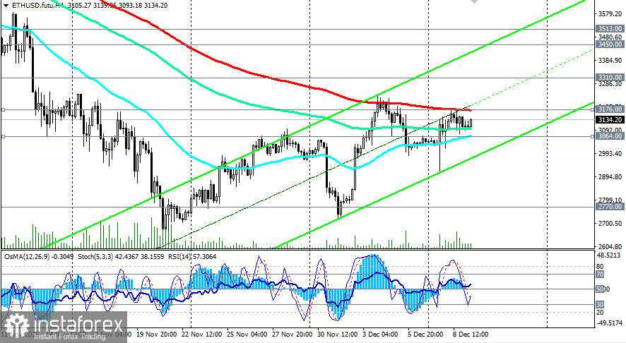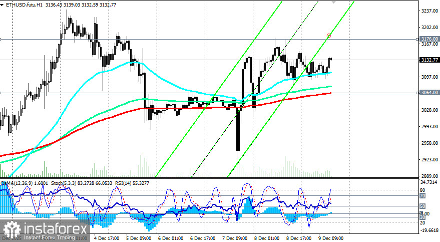 В частности, пара ETH/USD, торгуясь, на момент публикации данной статьи, вблизи отметки 3130.00, второй день двигается в диапазоне между важными краткосрочными уровнями 3064.00 (ЕМА200 на 1-часовом графике) и 3176.00 (ЕМА200 на 4-часовом графике).