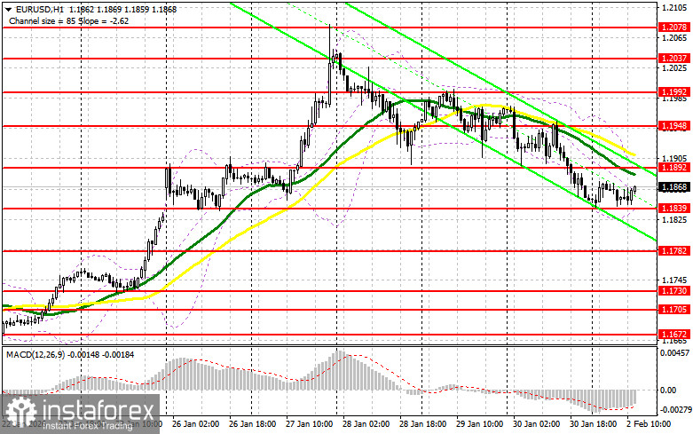 Во второй половине дня нас ждут цифры по производственному индекс ISM США, а также выступление члена FOMC Рафаэля Бостика. В случае сильной статистики и твердой позиции представителей ФРС, давление на EUR/USD вернется. В таком случае я все еще надеюсь увидеть покупателей в районе поддержки 1.1839, теста которой в первой половине дня так и не стоялось. Лишь формирование там ложного пробоя даст точку входа в длинные позиции в расчете на продолжение развития бычьего рынка с ростом к сопротивлению 1.1892. Прорыв и обратный тест этого диапазона сверху вниз станут подтверждением правильной точки вход с движением к области 1.1948. Самой дальней целью будет уровень 1.1992, где буду фиксировать прибыль. При варианте снижения EUR/USD и отсутствия активности в районе 1.1839, евро может просесть более крупно. Это приведет к снижению в район 1.1782. Лишь после формирования там ложного пробоя собираюсь действовать на покупку евро. Открывать длинные позиции сразу на отскок планирую от 1.1730 с целью восходящей коррекции в 30-35 пунктов внутри дня.