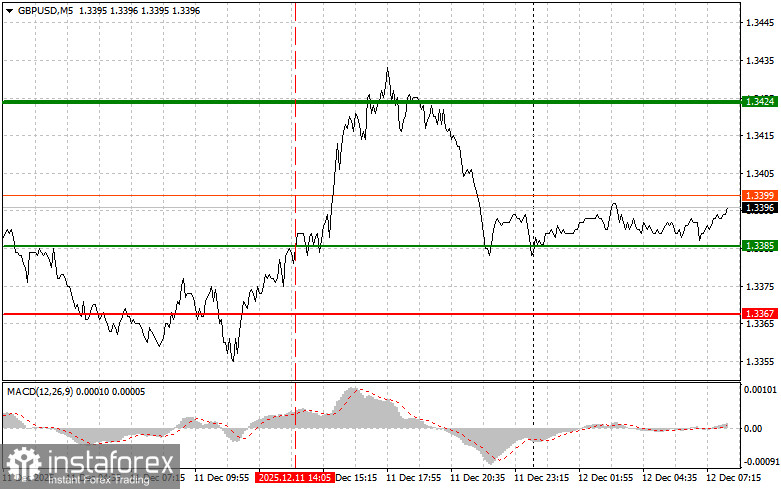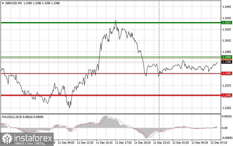 Сценарий №2: покупать фунт сегодня также планирую в случае двух подряд тестов цены 1.3386 в момент, когда индикатор MACD будет находиться в области перепроданности. Это ограничит нисходящий потенциал пары и приведет к обратному развороту рынка вверх. Можно ожидать рост к противоположным уровням 1.3400 и 1.3431.
