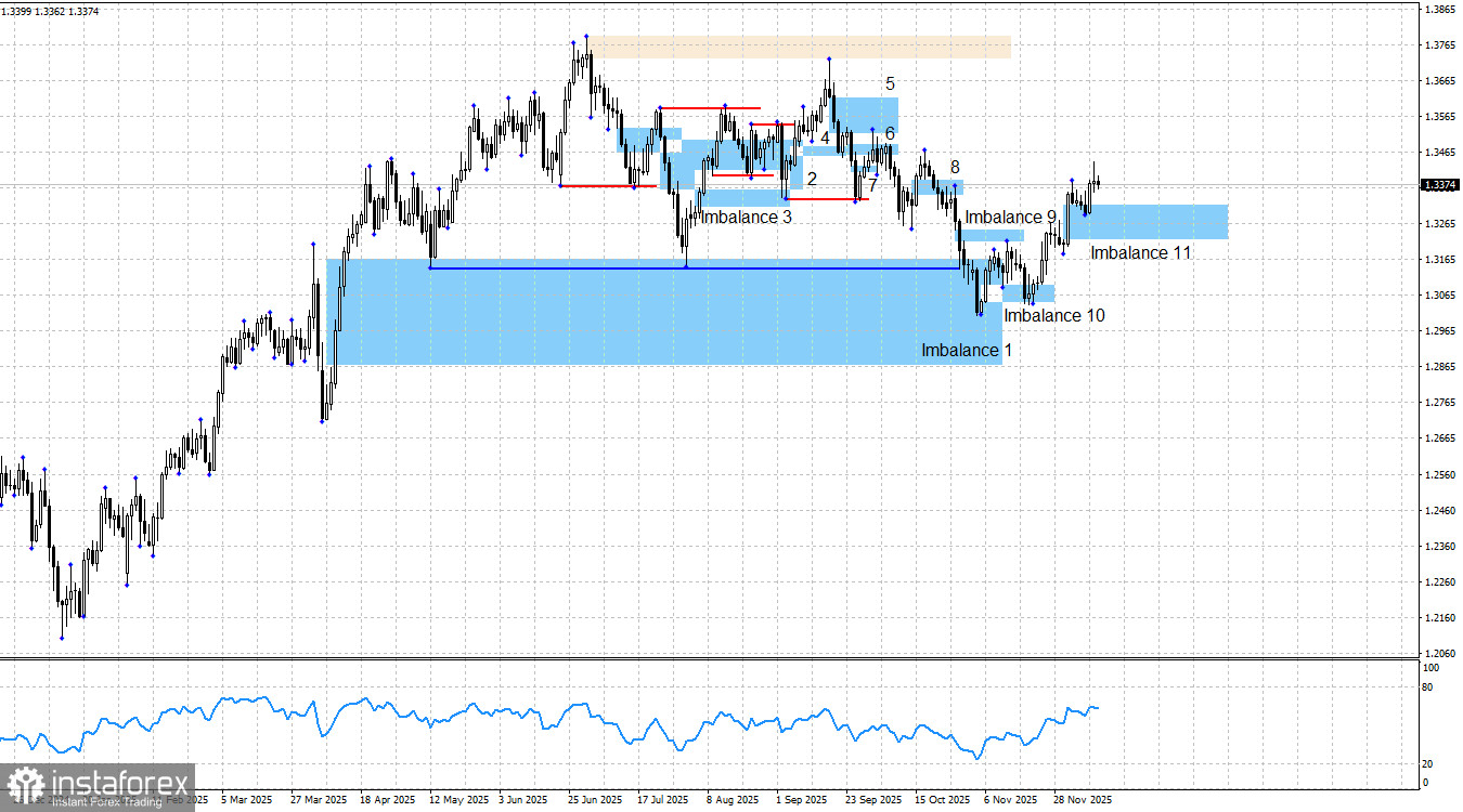 По британцу картина начинает принимать более приятный для глаз вид. Было отработано три «бычьих» паттерна, сигналы образованы, трейдеры могут поддерживать сделки на покупку. Я не вижу никаких информационных оснований для «медвежьего» тренда в ближайшее время. Ожидать возобновление «бычьего» тренда можно было еще из зоны имбаланса 1. На данный момент британец получил реакцию от имбаланса 1, от имбаланса 10 и от имбаланса 11. В качестве цели потенциального роста я рассматриваю уровень 1,3725. При образовании «медвежьих» паттернов торговую стратегию, возможно, придется пересмотреть, но на текущий момент оснований для этого нет.