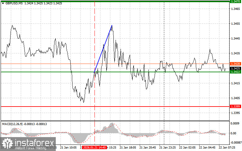 Тест цены 1.3422 пришелся на момент, когда индикатор MACD только начинал движение вверх от нулевой отметки, что стало подтверждением правильной точки входа на покупку фунта. В результате пара выросла на 30 пунктов.