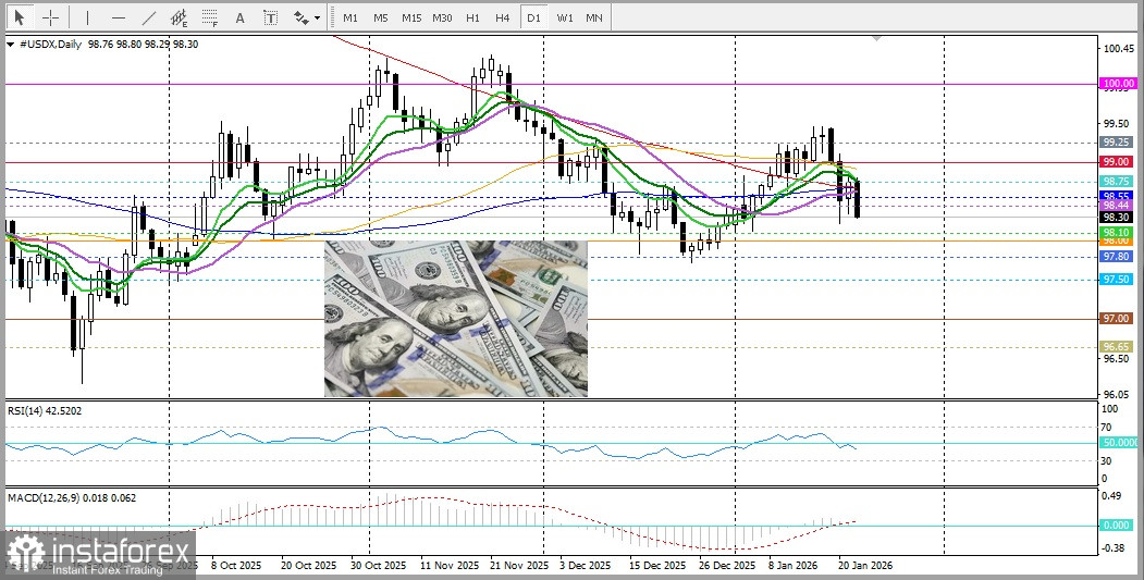 С точки зрения денежно-кредитной политики, такая комбинация данных укрепляет аргументы в пользу выдержанной паузы Федеральной резервной системы (ФРС). Рынки в целом не ожидают изменения процентных ставок на заседании 27-28 января, а опрос Reuters показывает, что 55 из 100 экономистов прогнозируют первое снижение ставки лишь в июне или позже, что поддерживает мягкие ожидания относительно траектории ФРС. Эти ожидания, вкупе с сохраняющимися опасениями политического вмешательства в независимость ФРС, оказывают давление на доллар США и ограничивают глубину его коррекционного роста; индекс доллара США (DXY) падает, теряя вчерашний прирост.