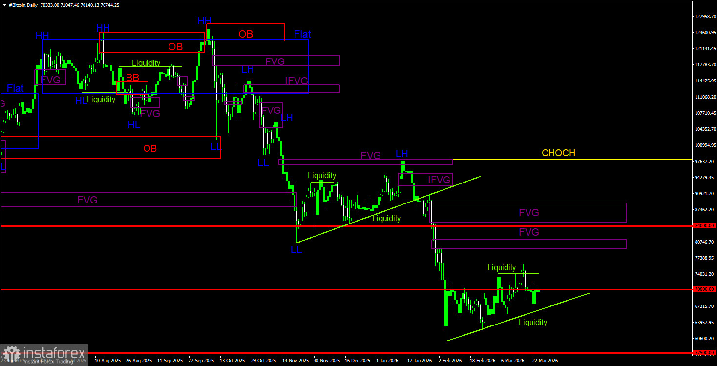 Торговые рекомендации по Биткоину(Bitcoin) на 25 марта по системе ICT
