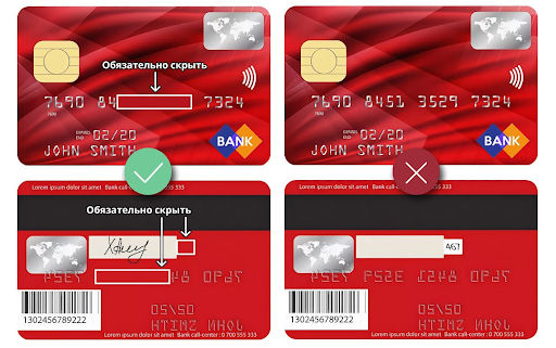 Крім того, для вашої фінансової безпеки ми просимо вас приховувати частину номера карти на лицьовому та зворотному боці, залишаючи видимими лише перші 6 та останні 4 цифри. Зверніть увагу, що код CVС2/CVV2 на зворотному боці карти теж необхідно приховати.