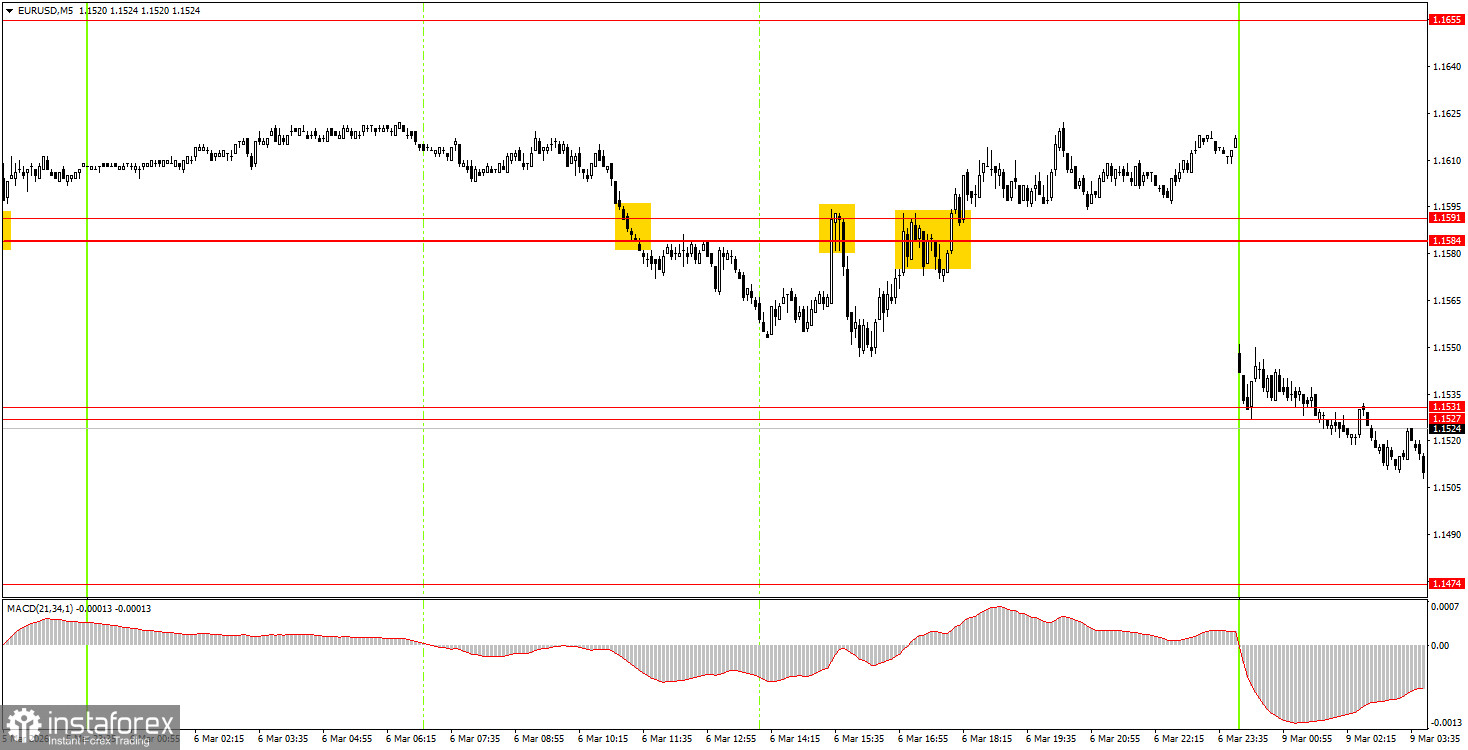 วิธีเทรดคู่สกุลเงิน EUR/USD ในวันที่ 9 มีนาคม? เคล็ดลับง่ายๆ และวิเคราะห์ธุรกรรมสำหรับมือใหม่