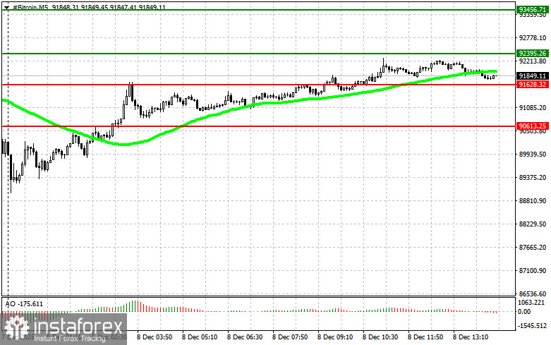 Сценарий №2: покупать биткоин можно от нижней границы $91 600 при отсутствии рыночной реакции на ее пробой в обратную сторону к уровням $92 400 и $93 400.