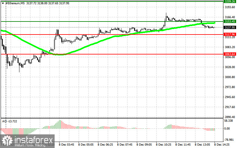 Сценарий №2: продавать эфир можно от верхней границы $3153 при отсутствии рыночной реакции на ее пробой в обратную сторону к уровням $3117 и $3063.
