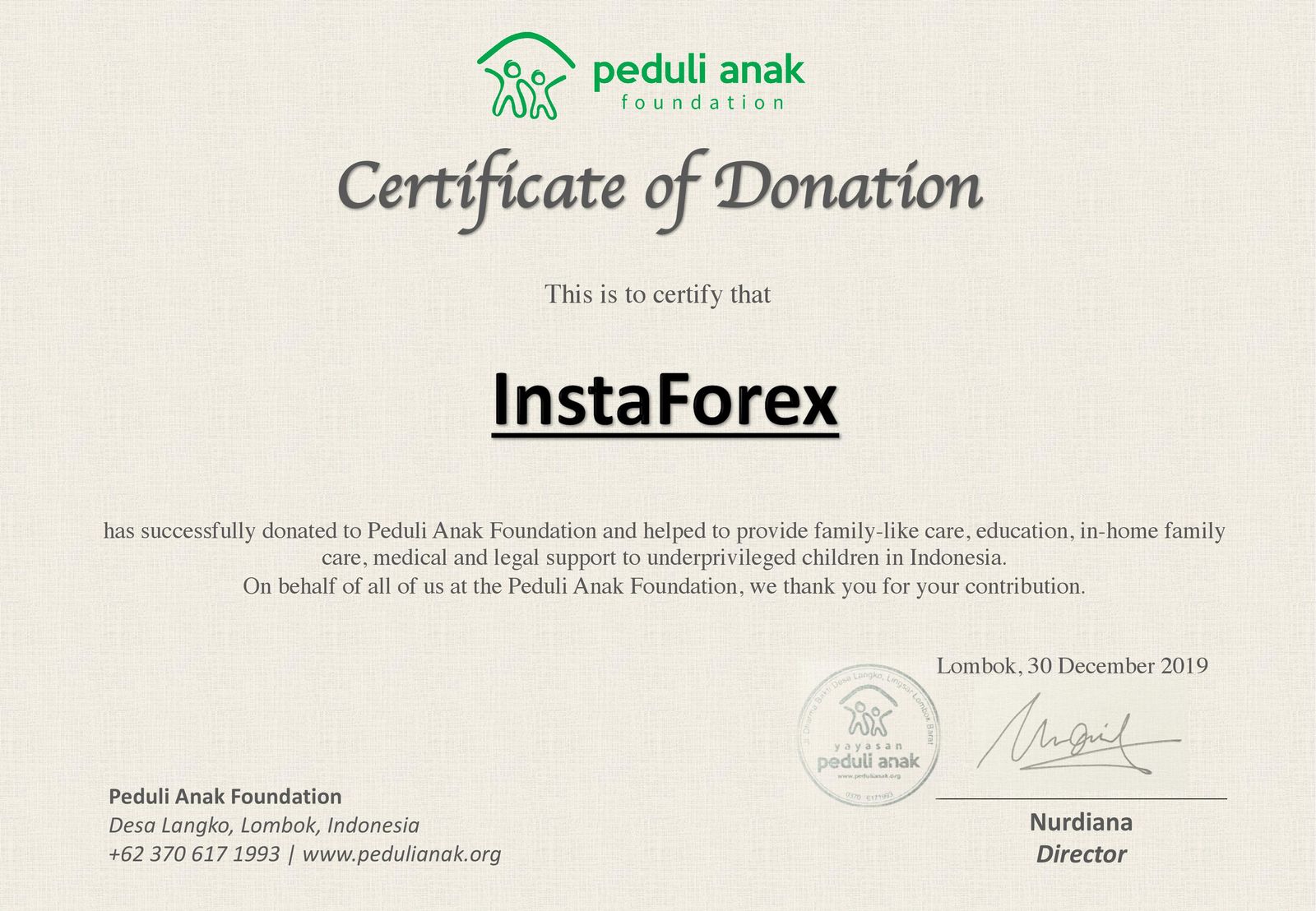 Trong vài năm trở lại đây, có ngày càng nhiều các tổ chức từ thiện và cá nhân đã trở thành đối tác của Công ty InstaTrade. Danh sách các tổ chức từ thiện và tình nguyện viên sẽ được cập nhật liên tục trên website nhằm phản ánh quan niệm về trách nhiệm xã hội trong Công ty InstaTrade. Theo cách đó, chúng tôi giúp đỡ và cho rằng đó là việc cần thiết để ghi chép lại những tổ chức từ thiện và những con người bình thường, giản dị đã mang đến sự hỗ trợ về y tế, giáo dục và chia sẻ những vấn đề xã hội này.